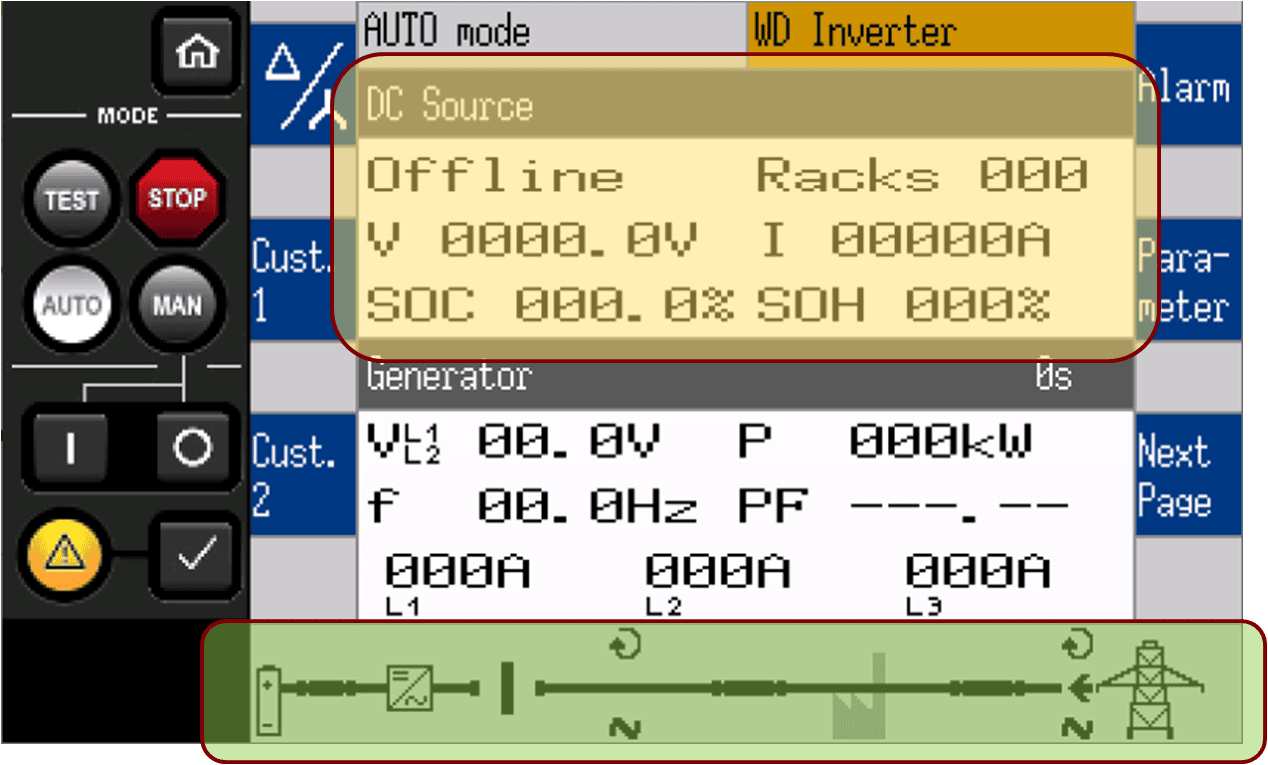 §Indicate operation modes, setpoints and alarms of the Inverter/DC Source